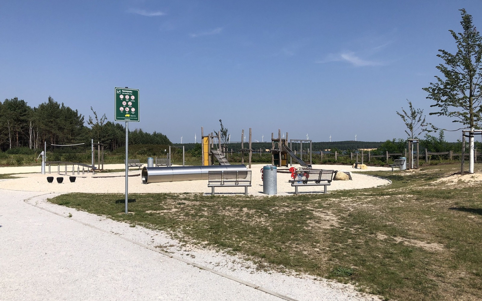 Am Scheibe See erwartet die kleinen Besucher ein Spielplatz mit vielseitigen Angebot. Neben einer Schaukel und einer Rutsche gibt es vor Ort Balanciersteine und einen Kriechtunnel. Im Sandkasten können kleine Kunstwerke gebaut werden.