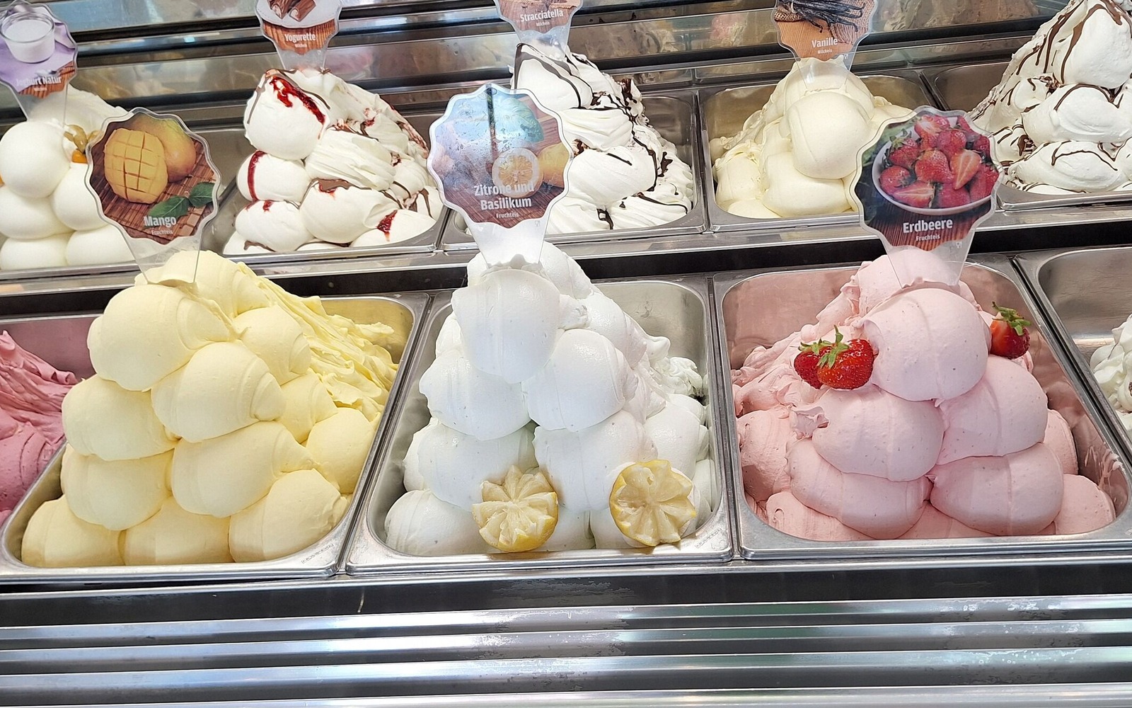 The popular "Eis Café Italia," an Italian family business, opened six years ago at Bahnhofstrasse 38B. Since then, it has enjoyed great popularity with locals and visitors alike. Nestled on Bahnhofstrasse, Eis Café Italia offers a relaxed and cozy atmosphere with warm colors and a friendly vibe. There are a total of 16 different ice cream flavors, made fresh daily. Whether salted caramel, crème brûlée, Yogurette, yogurt-mandarin, or the classic flavors of strawberry, vanilla, and stracciatella – there's something for every taste. Vegan flavors such as tropical, wild berry, mango, and dark chocolate are also particularly popular. Nutella and white ice cream are particularly popular with children. This season, the highlights are Dubai chocolate, lemon tart, almond, and "Italian opera" – a delicious creation made with various nuts and pistachios. The ice cream is made fresh daily, so the quality is always guaranteed. In addition to classic ice cream, the café also offers ice cream cakes. Customers can choose between two meringue layers or a chocolate base and add their favorite flavors, fruits, and decorative elements such as sugar pearls, chocolate sauce, or Smarties. A visit to "Eis Café Italia" is always a treat – for all ages!