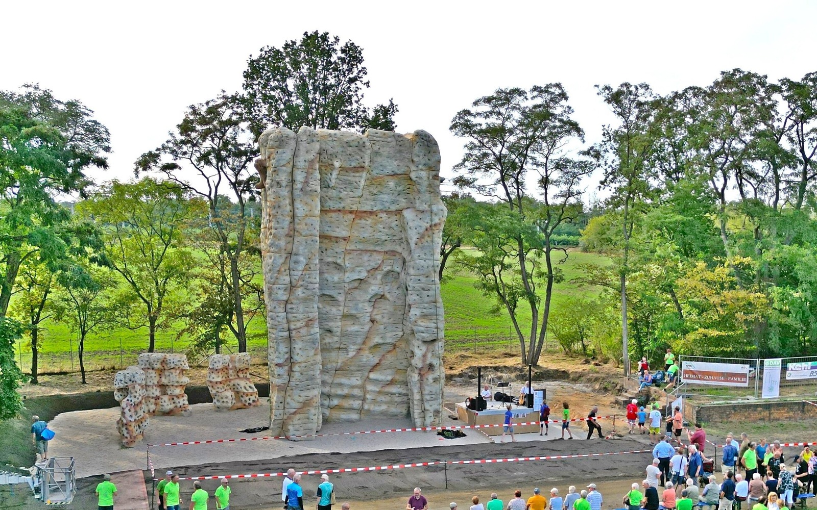 Situated exactly between Lake Großräschen and Lake Sedlitz, the tower offers an opportunity for vertical sports that is rather rare in the flat countryside. The Sedlitz Mountain Friends Association have created an opportunity far from the mountains to pursue their climbing hobby in the Lusatian homeland.